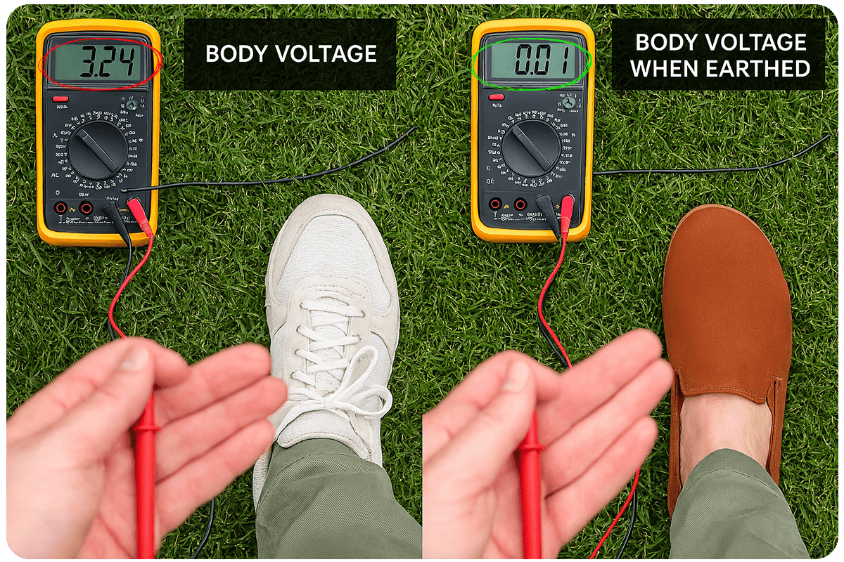 Grounding footwear relieves pain and prevents chronic discomfort over time, ensuring comfort.