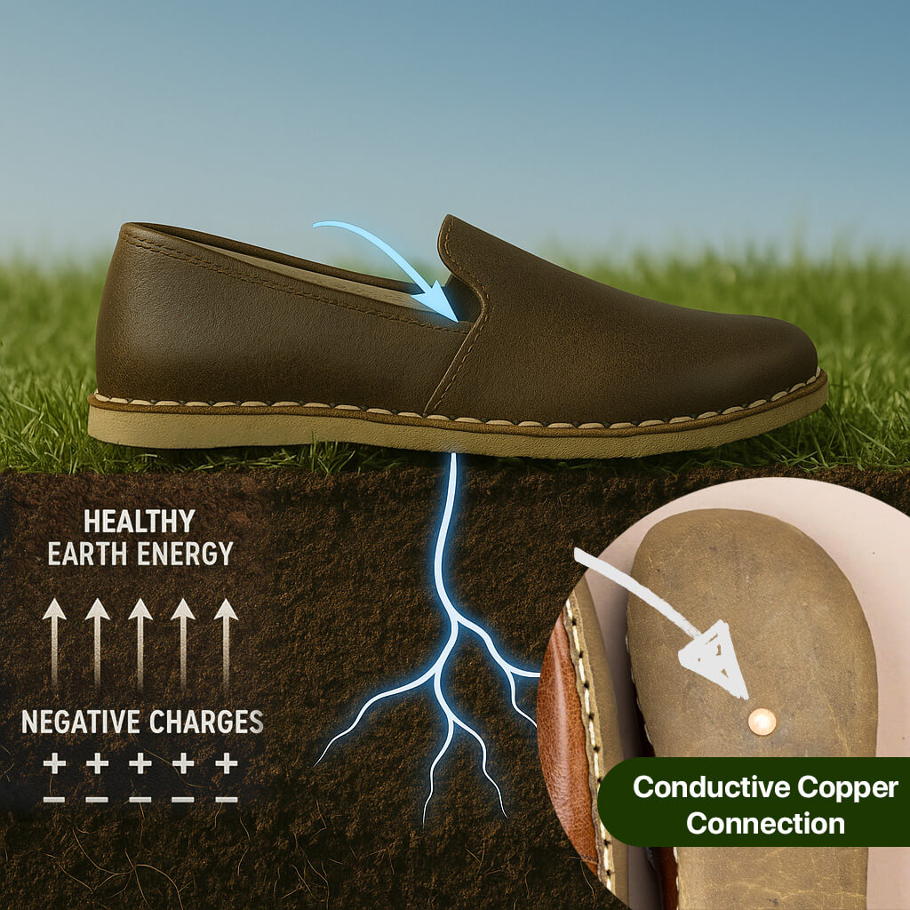 By conducting Earth's energy, our shoes ground your body, reduce foot stress, and strengthen posture for lasting relief.